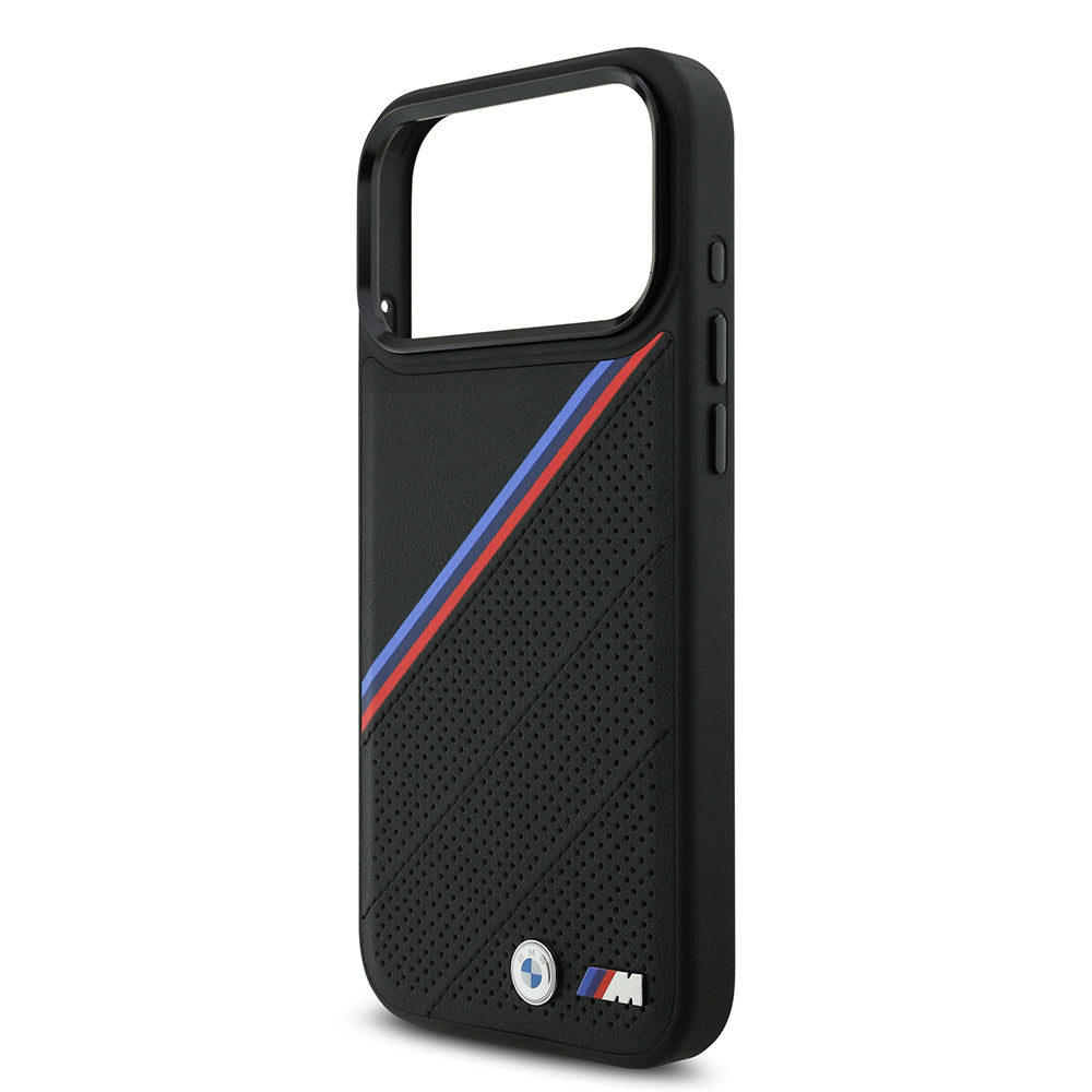 iPhone 17 Pro Max Kılıf BMW Orjinal Lisanslı M-safe Şarj Özellikli M Logolu Üç Şeritli Delikli Deri Kapak