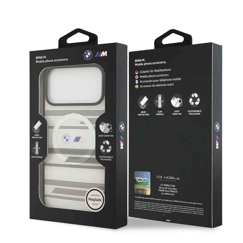 iPhone 17 Pro Max Kılıf BMW Orjinal Lisanslı M-safe Şarj Özellikli Metal Kamera Butonlu Yatay Şeritli M Dizayn Kapak