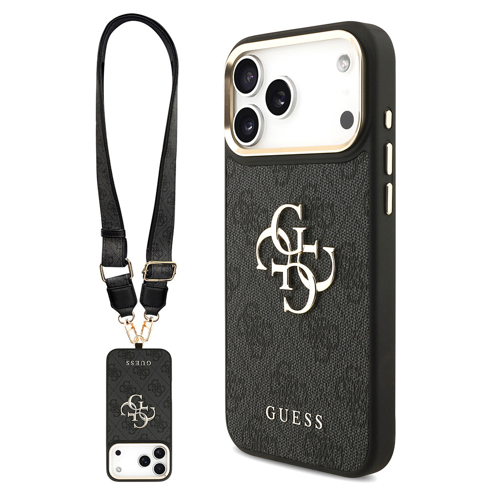 Apple iPhone 17 Pro Max Kılıf Guess Orjinal Lisanslı 4G Büyük Metal Logolu Kalın Askılı Kapak Siyah