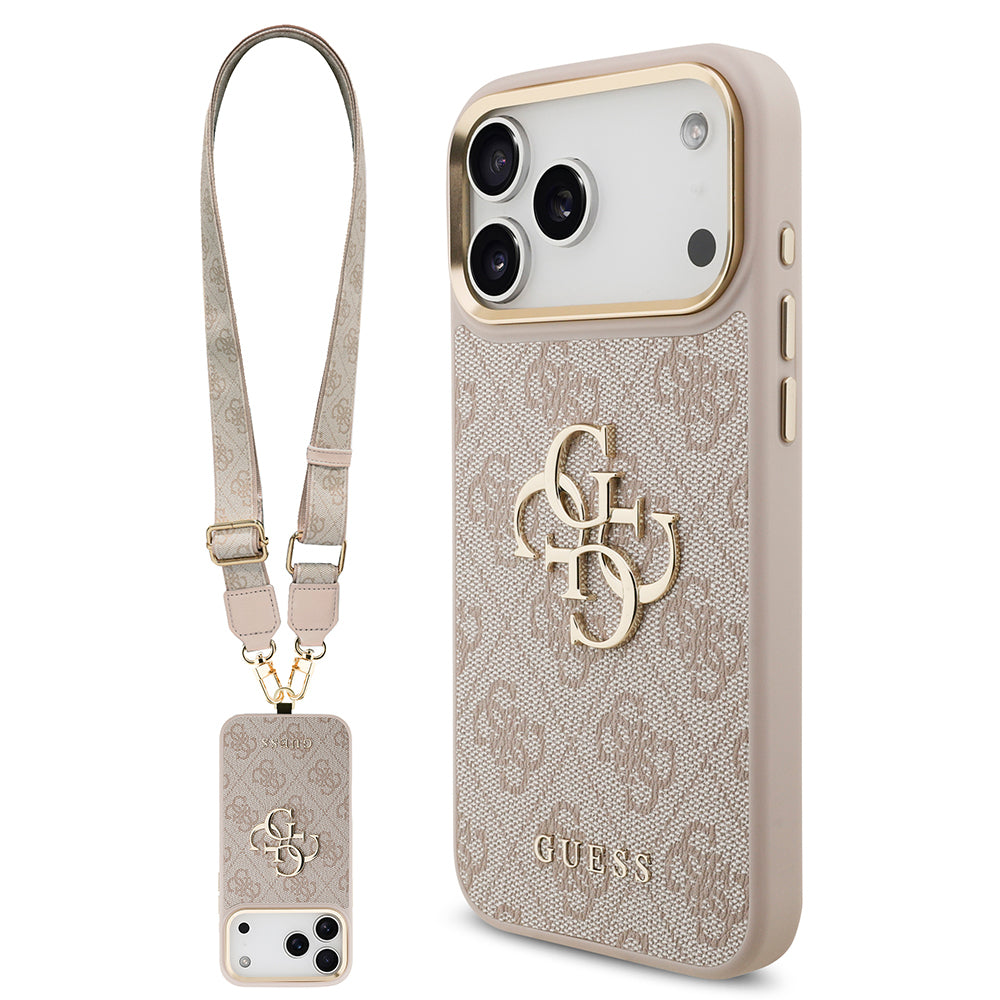 Apple iPhone 17 Pro Max Kılıf Guess Orjinal Lisanslı 4G Büyük Metal Logolu Kalın Askılı Kapak Pembe