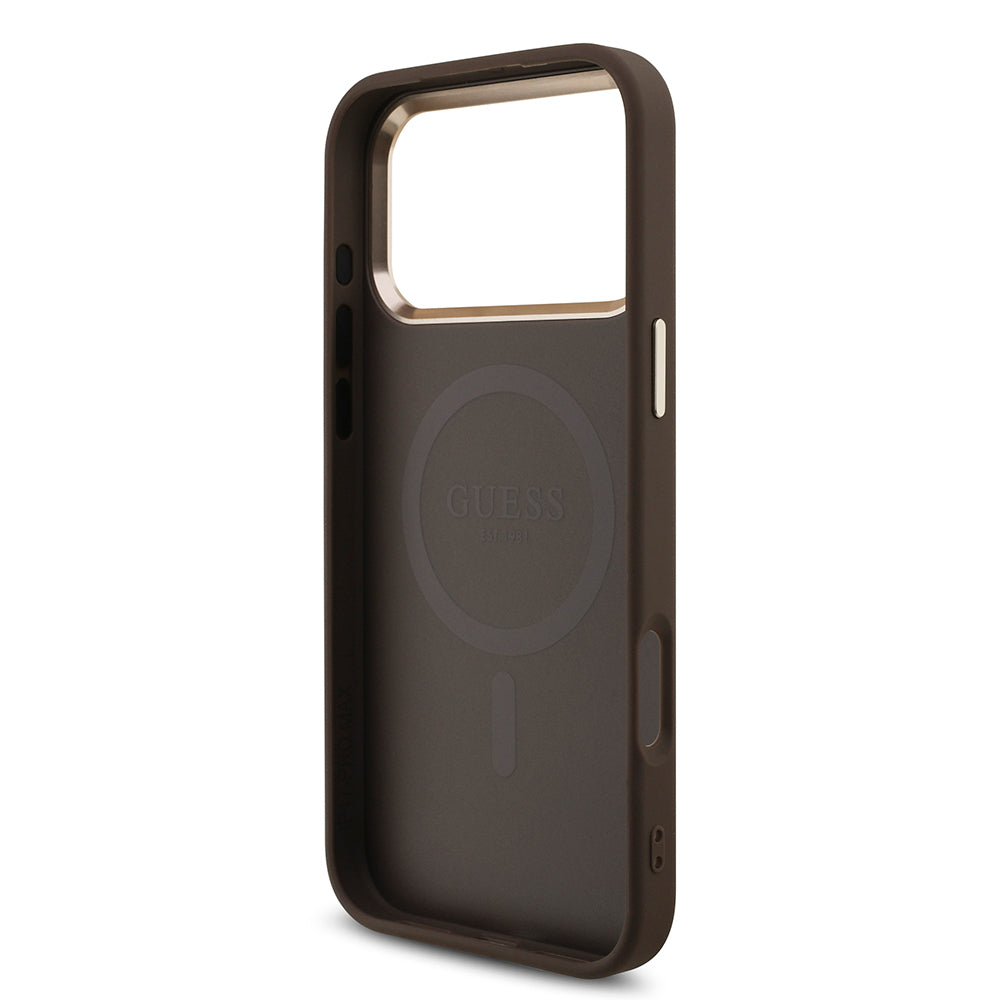 iPhone 17 Pro Max Kılıf Guess Orjinal Lisanslı M-safe Şarj Özellikli Taşlı Üçgen Logo 4G Desenli Kapak
