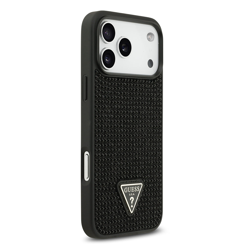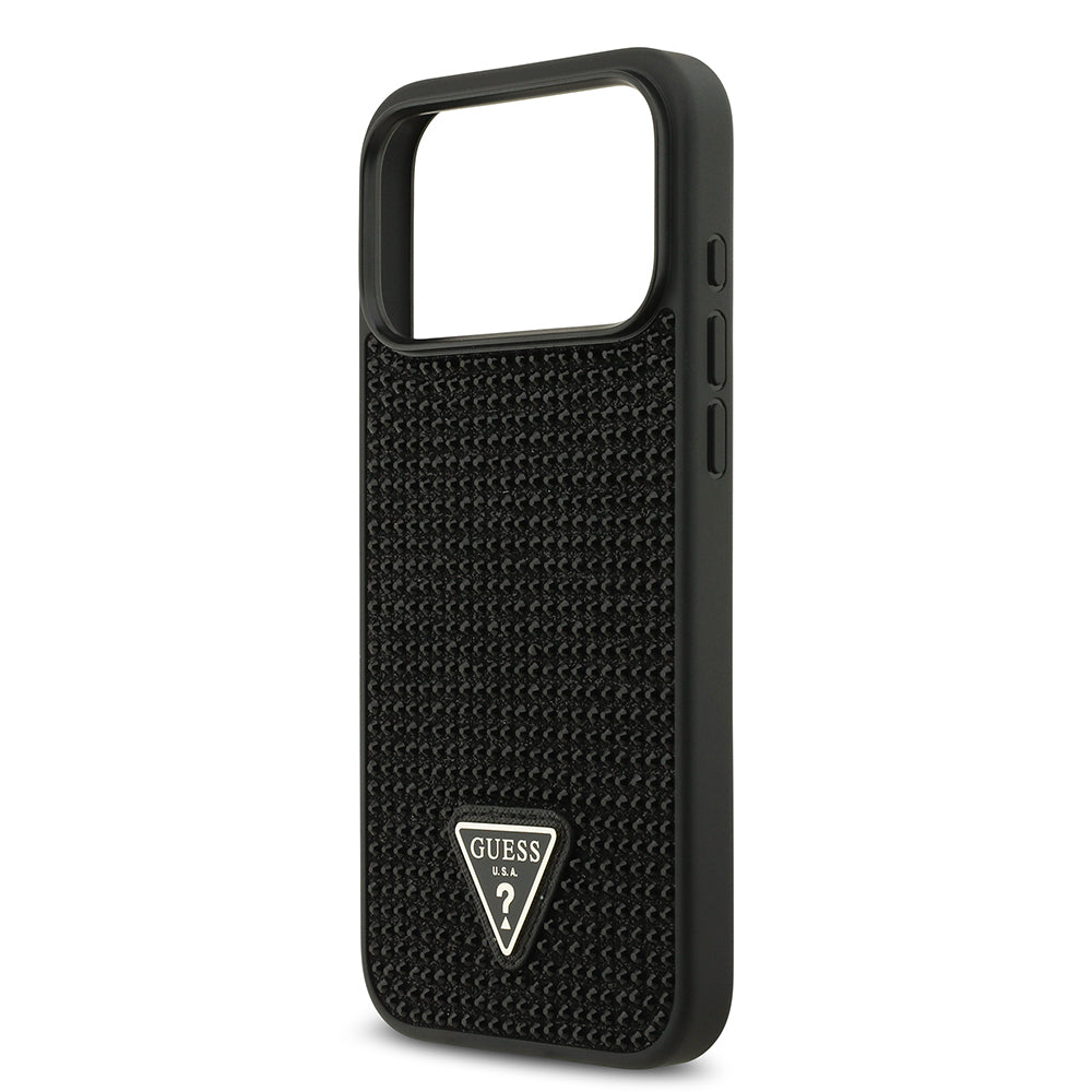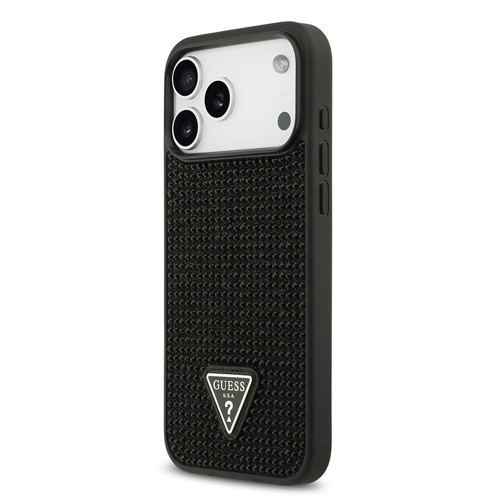 Apple iPhone 17 Pro Max Kılıf Guess Orjinal Lisanslı Taşlı Arka Yüzey Üçgen Logolu Kapak Siyah