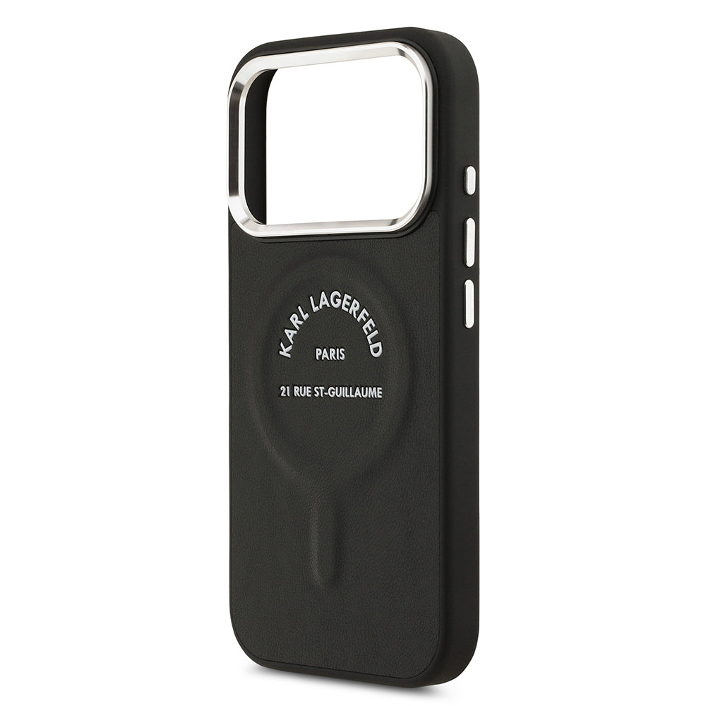 Apple iPhone 17 Pro Max Kılıf Karl Lagerfeld Orjinal Lisanslı M-safe Şarj Özellikli Metal Kamera ve Buton Tasarımlı Paris RSG PU Deri Kapak Siyah