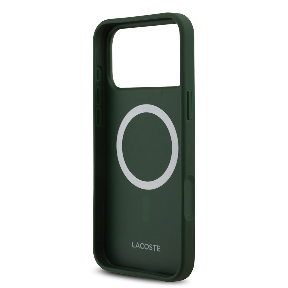 Apple iPhone 17 Pro Max Kılıf Lacoste Orjinal Lisanslı M-safe Şarj Özellikli PU Deri Tasarımlı Metal Logolu Kapak Yeşil