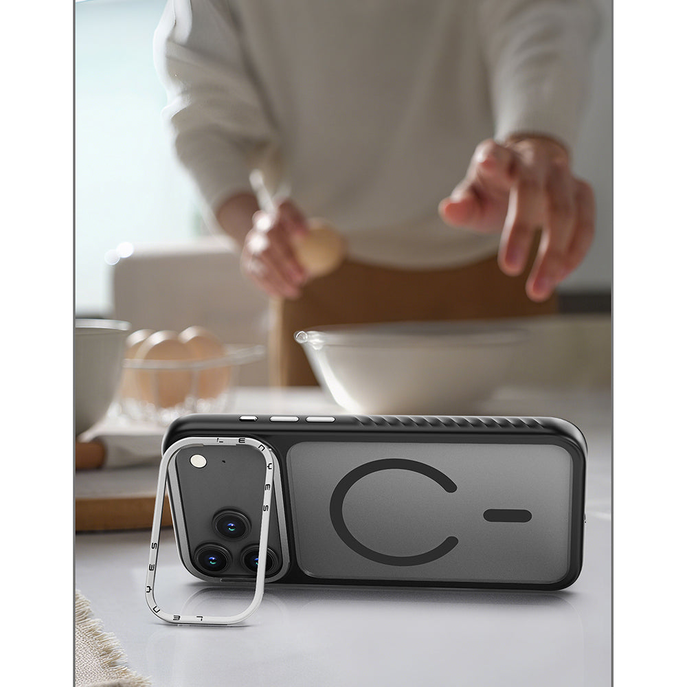 iPhone 17 Pro Max Kılıf M-safe Şarj Özellikli Metal Kamera Standlı Lenyes CK226 PC Kapak
