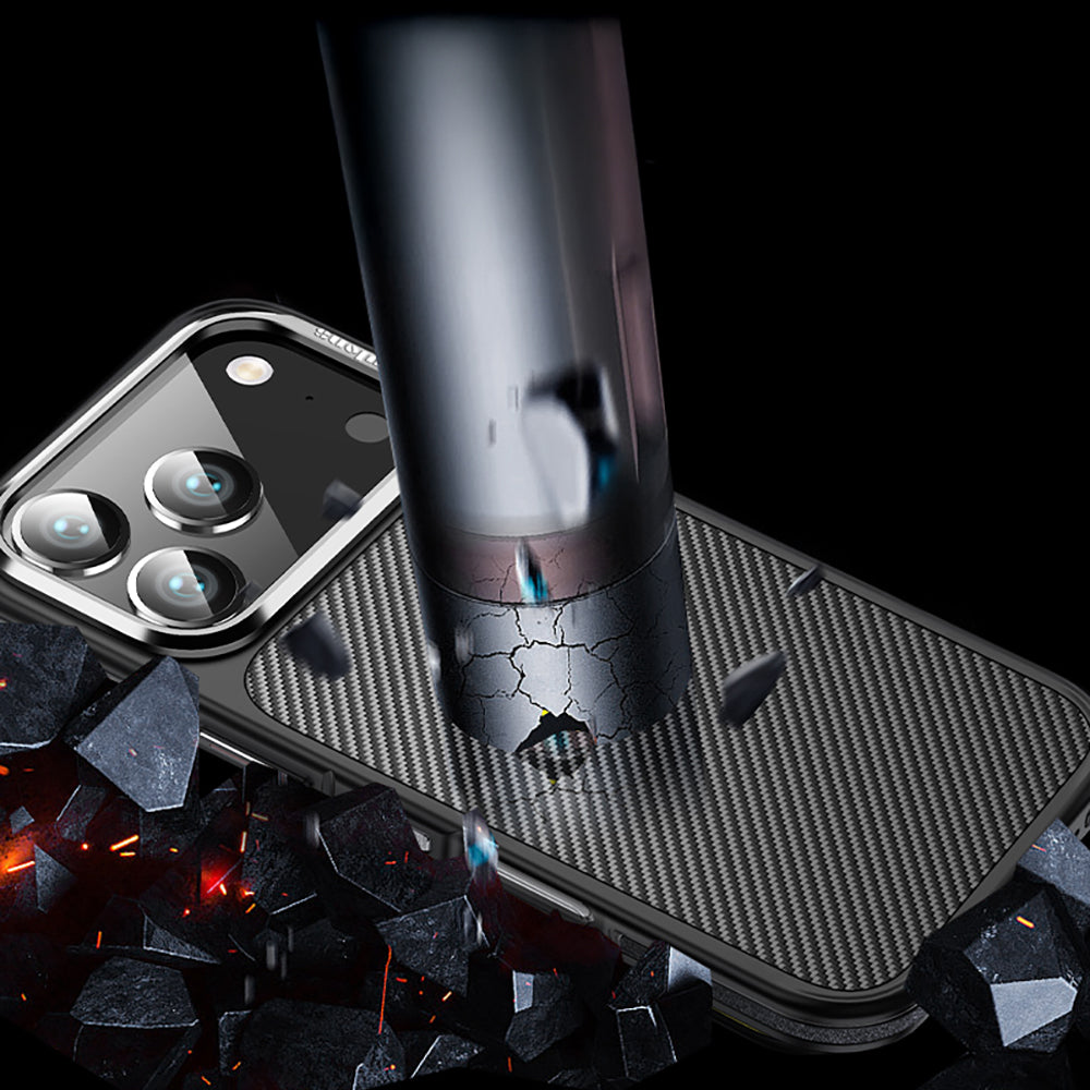 Apple iPhone 17 Pro Max Kılıf Magsafe Şarj Özellikli Mat Transparan Karbon Fiber Görünümlü Wlons Marin Kapak