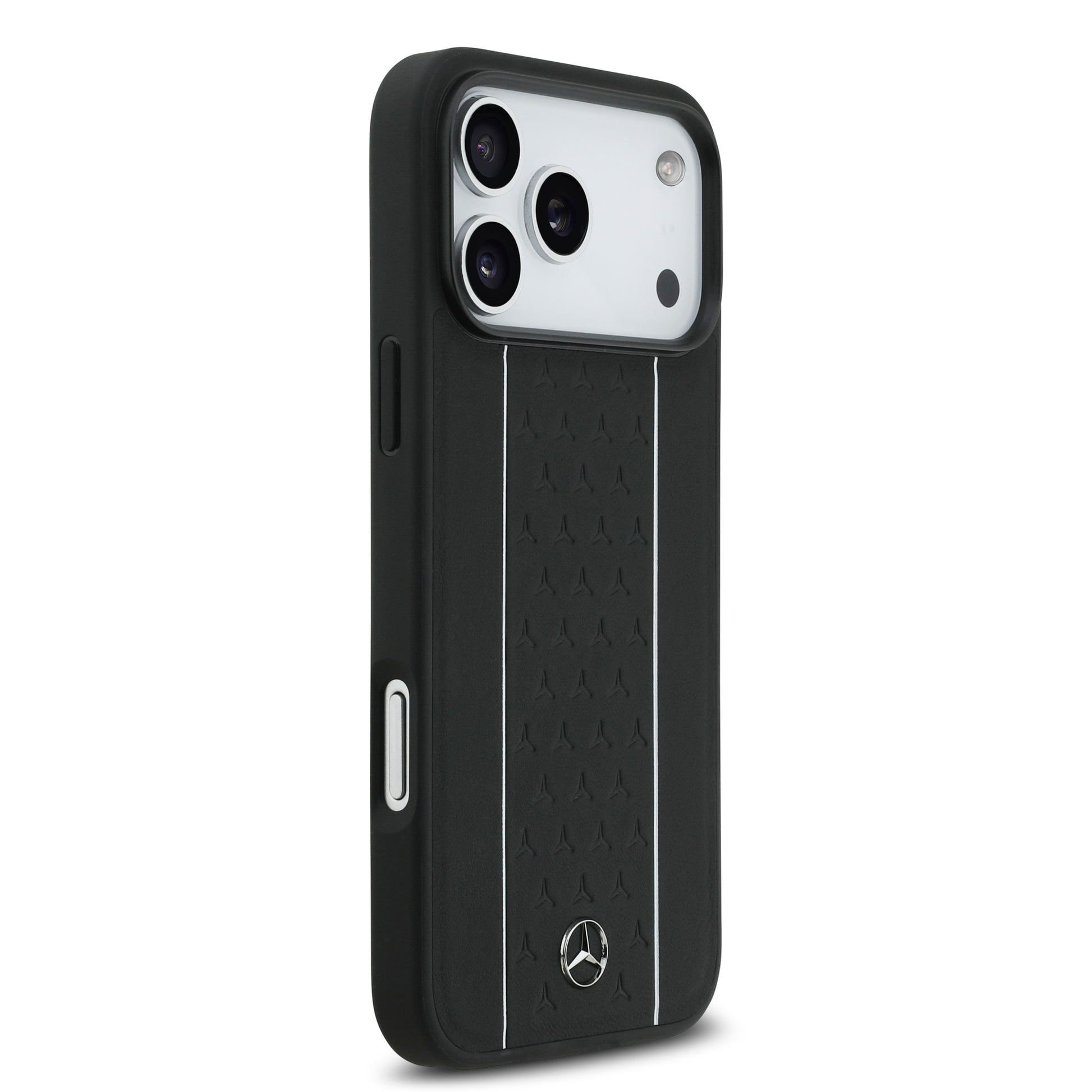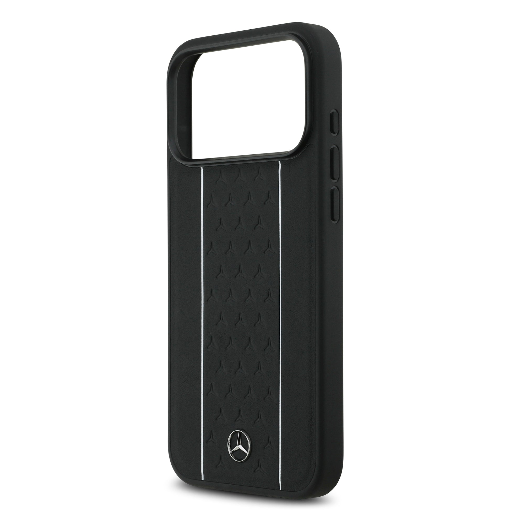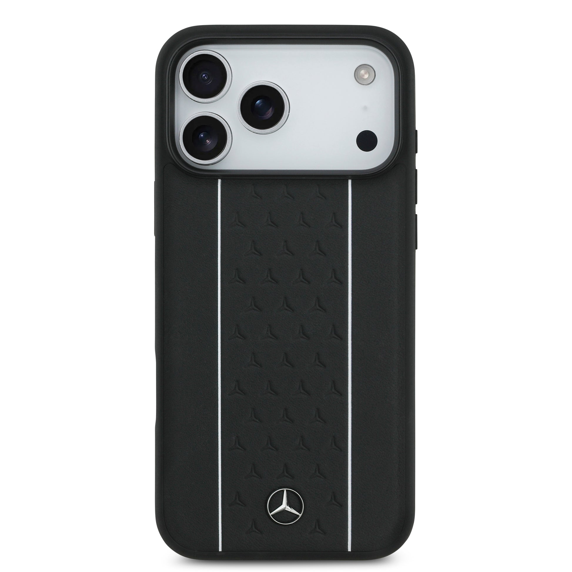 Apple iPhone 17 Pro Max Kılıf Mercedes Benz Orjinal Lisanslı M-safe Şarj Özellikli Şeritli Yıldız Desenli Metal Logolu Deri Kapak Siyah