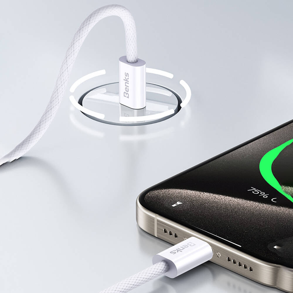 Benks D46, teknolojik bir şaheser olarak karşınıza çıkıyor. Şık tasarımı, dayanıklı yapısı ve güçlü bağlantı kapasitesiyle, şarj ve veri transferi deneyiminizi yeni bir boyuta taşır. 480Mbps değerinde hızlı veri aktarım gücüne sahiptir. 30dk içerisinde şarjınızı %55 seviyelerine çıkartabilir. Ve ayrıca iPhone 15 Serisi için tam uyumlu olarak çalışmaktadır. Her kullanımda, güçlü performansın ve zarafetin eşlik ettiği bu kablo, teknoloji tutkunlarının vazgeçilmezi olacak. Benks D46 ile şarj etmek, sadece bir ihtiyaç değil, aynı zamanda bir keyif haline geliyor.
