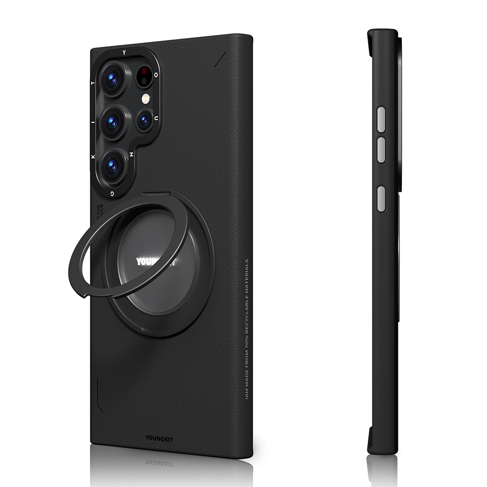 Galaxy S23 Ultra Kılıf Magsafe Şarj Özellikli 360° Standlı Basit Mat Deri Desenli Youngkit Tech Leather Serisi Kapak