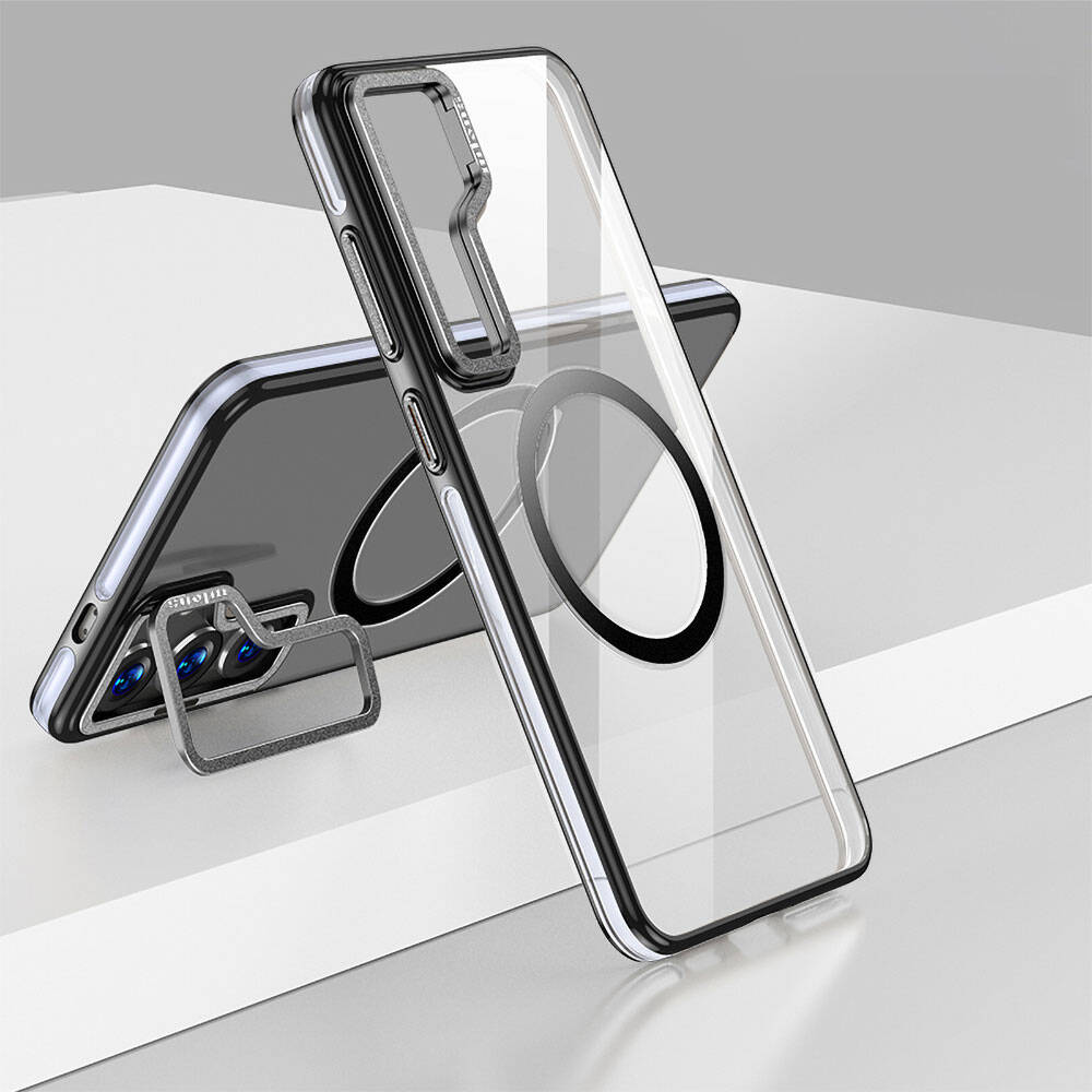 Galaxy S24 Plus Kılıf Magsafe Şarj Özellikli Wlons Standlı Efsane Kılıf Siyah