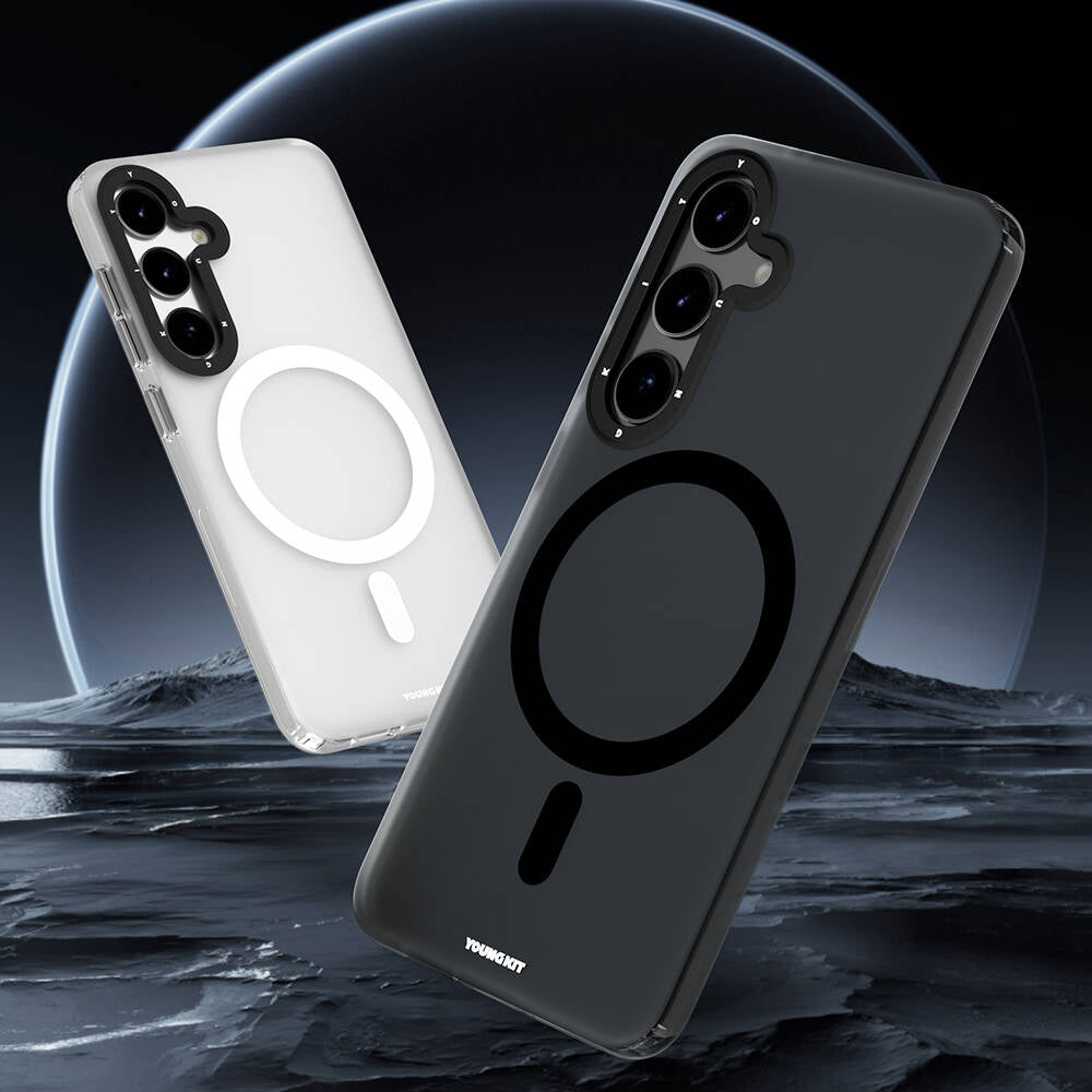 Galaxy S24 Plus Kılıf Magsafe Şarj Özellikli Youngkit Hidden Sand Serisi Kılıf Beyaz