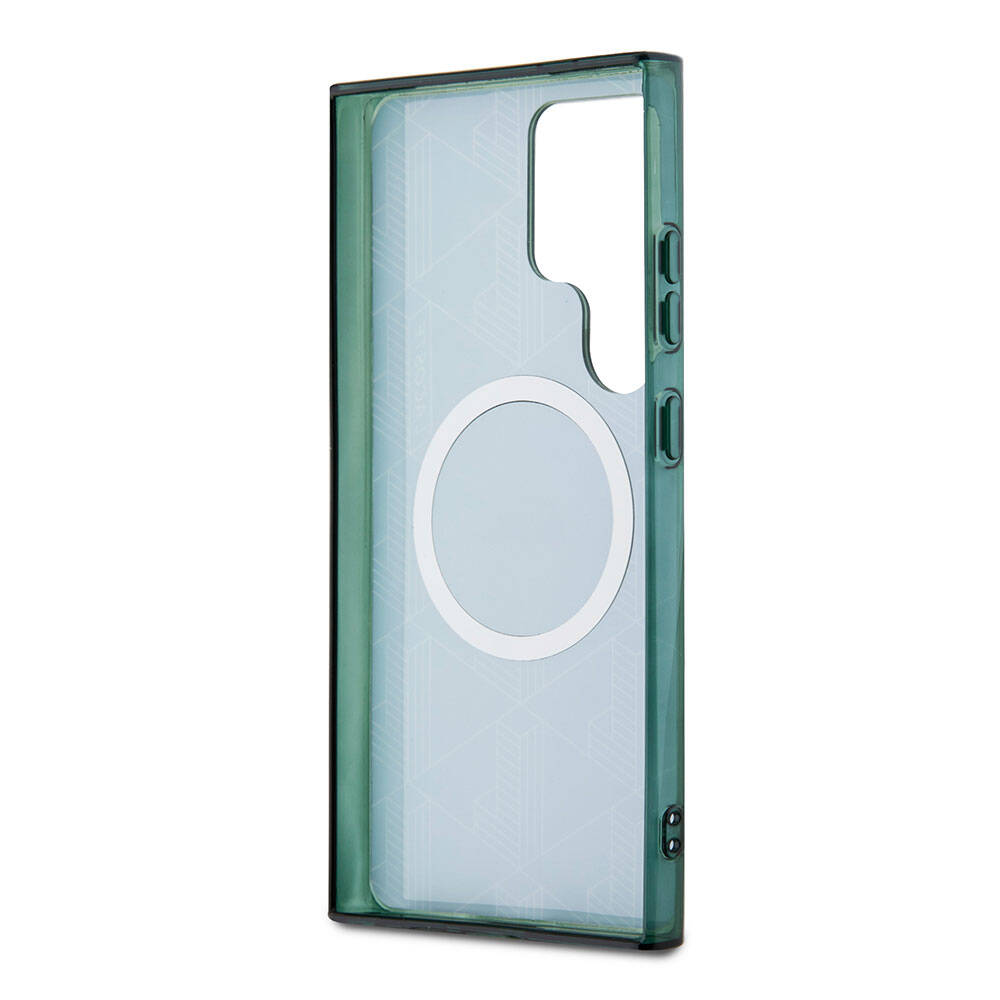 Galaxy S24 Ultra Kılıf Lacoste Orjinal Lisanslı Magsafe Şarj Özellikli Çift Katmanlı Timsah Logolu Blend Monogram Kılıf Petrol Yeşil