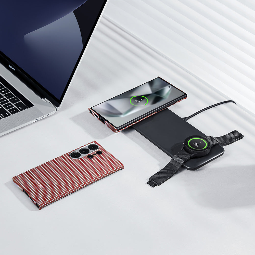 Galaxy S24 Ultra Kılıf Magsafe Şarj Özellikli 1500D Aramid Fiber Pitaka Ultra-Slim Classic Serisi Bonfire Kapak