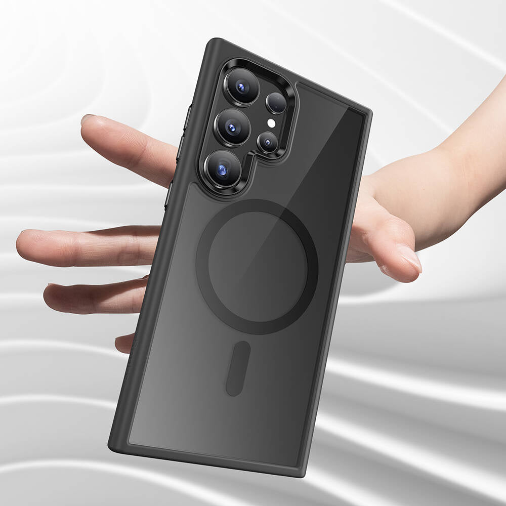 Galaxy S24 Ultra Kılıf Magsafe Şarj Özellikli Şeffaf Arka Yüzey Benks MagClap TPU Çerçeve Kılıf Gri