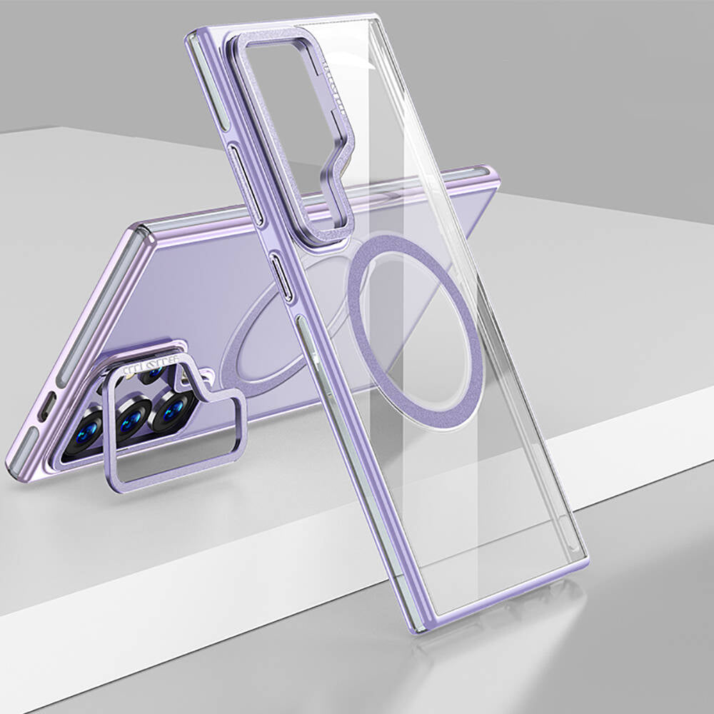 Galaxy S24 Ultra Kılıf Magsafe Şarj Özellikli Wlons Standlı Efsane Kılıf Mor