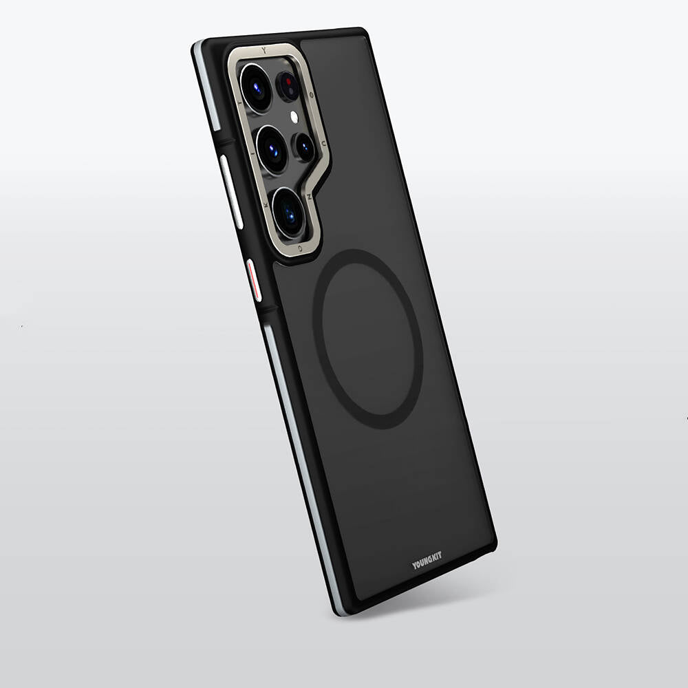 Galaxy S24 Ultra Kılıf Magsafe Şarj Özellikli Youngkit Rock Sand Serisi Kılıf Gri