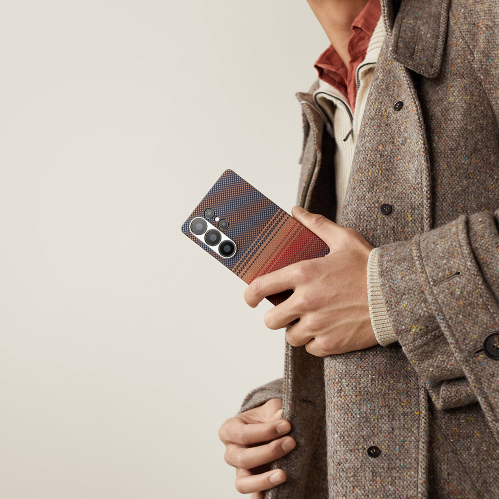 Aerospace sınıfı aramid fiber dokuma yapısı, çizilmelere ve renk solmasına karşı üstün dayanıklılık sunar. Fusion Weaving teknolojisi ile bir araya getirilen Sunset-Moonrise temalı renk tonları, kılıfın estetiğini arttırırken, cildinize dost dokusuyla mükemmel bir tutuş sağlar. Arka kapakta kullanılan alüminyum alaşım kamera çerçevesi de kameranızı koruma altına alır.