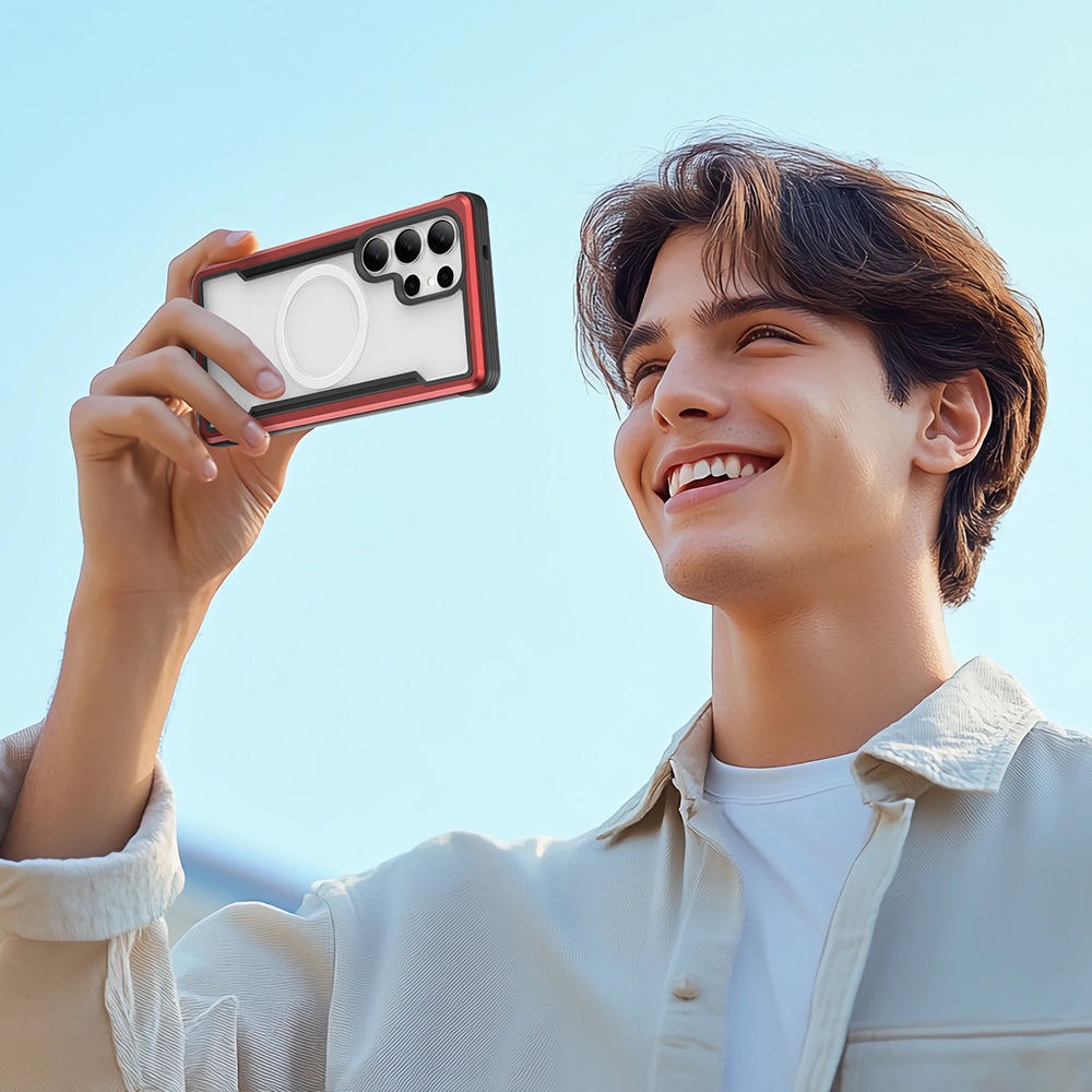 Galaxy S25 Ultra Kılıf M-safe Şarj Özellikli Airbagli Raptic Shield Serisi Şeffaf Arka Yüzey Kapak Kırmızı