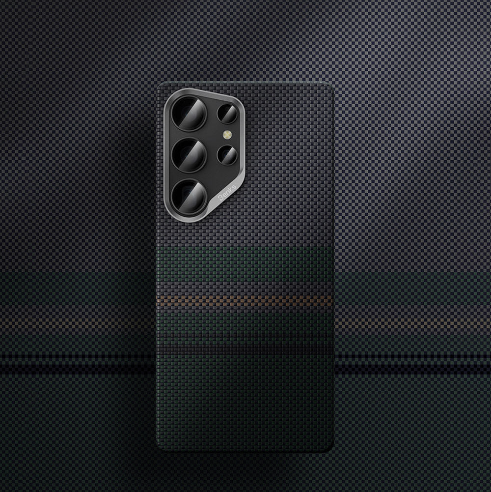 Galaxy S25 Ultra Kılıf Magsafe Şarj Özellikli Karbon Fiber Tasarımlı Benks Aurora ArmorAir Kevlar Kılıf Yeşil