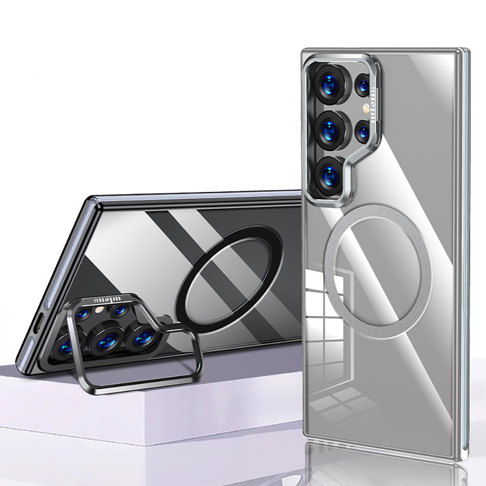 Galaxy S25 Ultra Kılıf M-safe Şarj Özellikli Wlons Standlı Efsane Kapak Gri