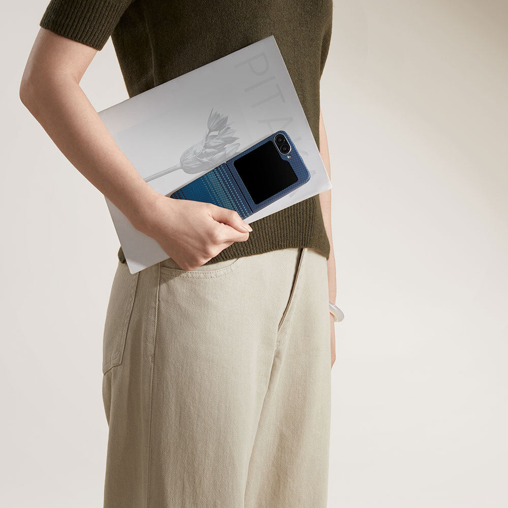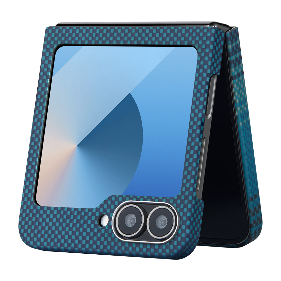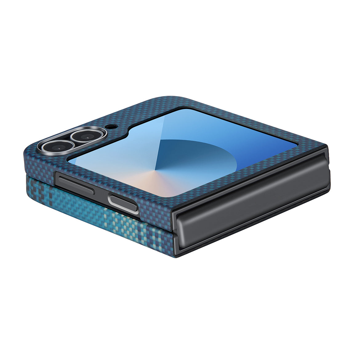 Galaxy Z Flip 6 Kılıf Magsafe Şarj Özellikli Aramid Fiber Pitaka Tactile Woven Sunset-Moonrise Serisi Moonrise Kılıf Mavi