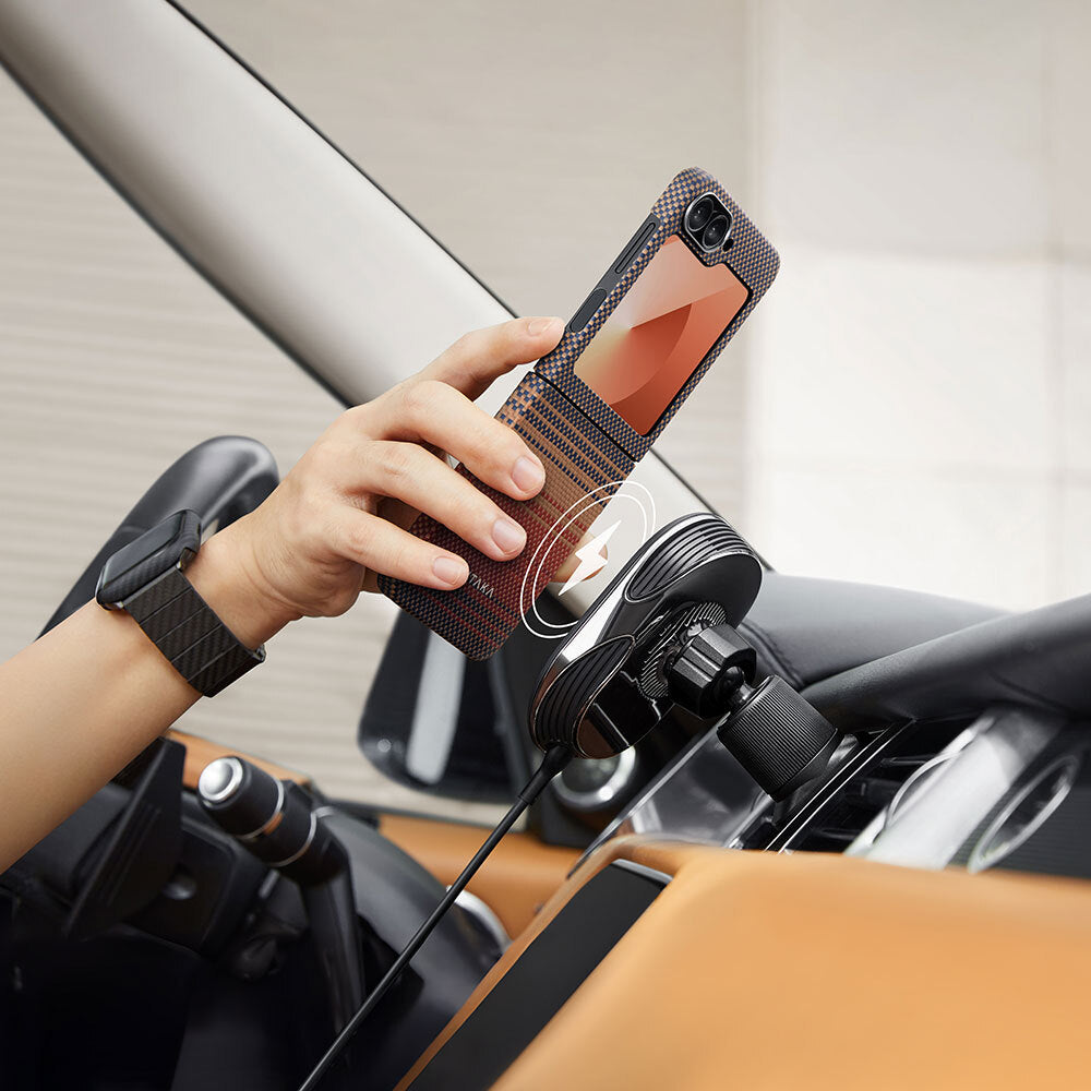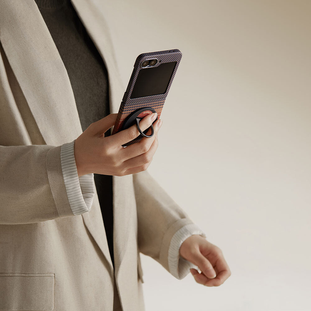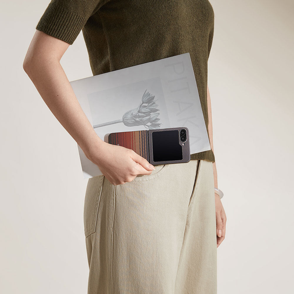 Galaxy Z Flip 6 Kılıf Magsafe Şarj Özellikli Aramid Fiber Pitaka Tactile Woven Sunset-Moonrise Serisi Sunset Kapak