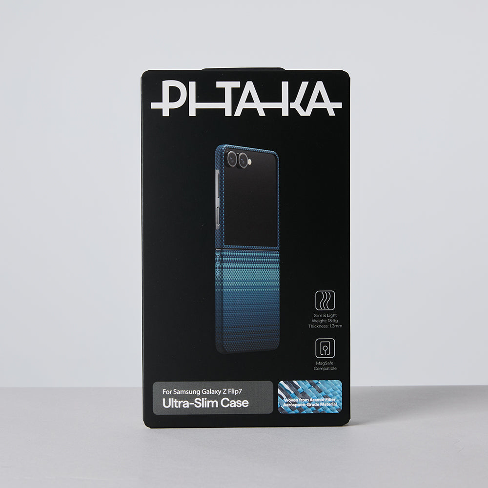 Galaxy Z Flip 7 Kılıf M-safe Şarj Özellikli Aramid Fiber Pitaka Tactile Woven Sunset-Moonrise Serisi Kapak