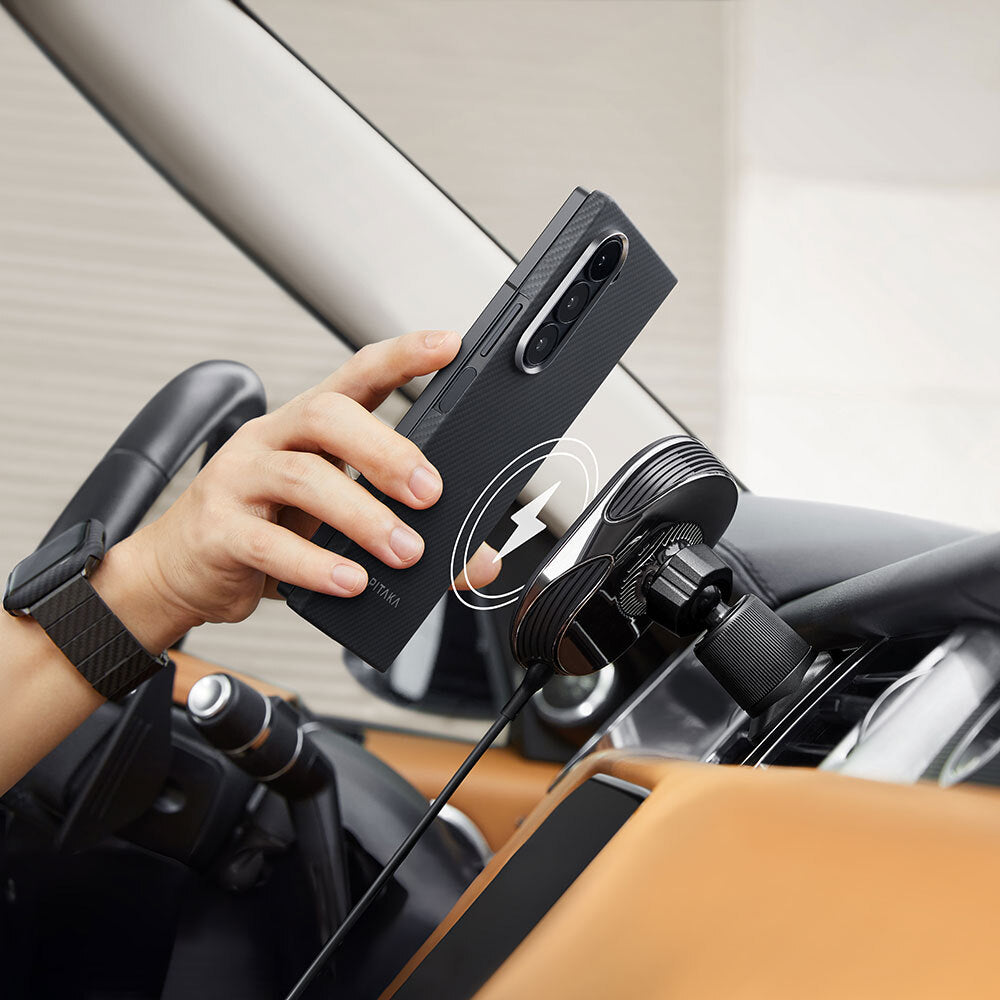 Aerospace kalitesinde 600D aramid fiber dokumasıyla tasarlanan bu kılıf, cihazınız için üstün koruma sağlarken cihazınızın inceliğini ve zarif yapısını korur. Sadece 17.85gr ağırlığı ve 0.85mm minimum kalınlığı ile telefonunuzu hantal bir görüntüye sokmaz, aynı zamanda MagSafe uyumluluğu sayesinde kablosuz şarj desteği sunar.