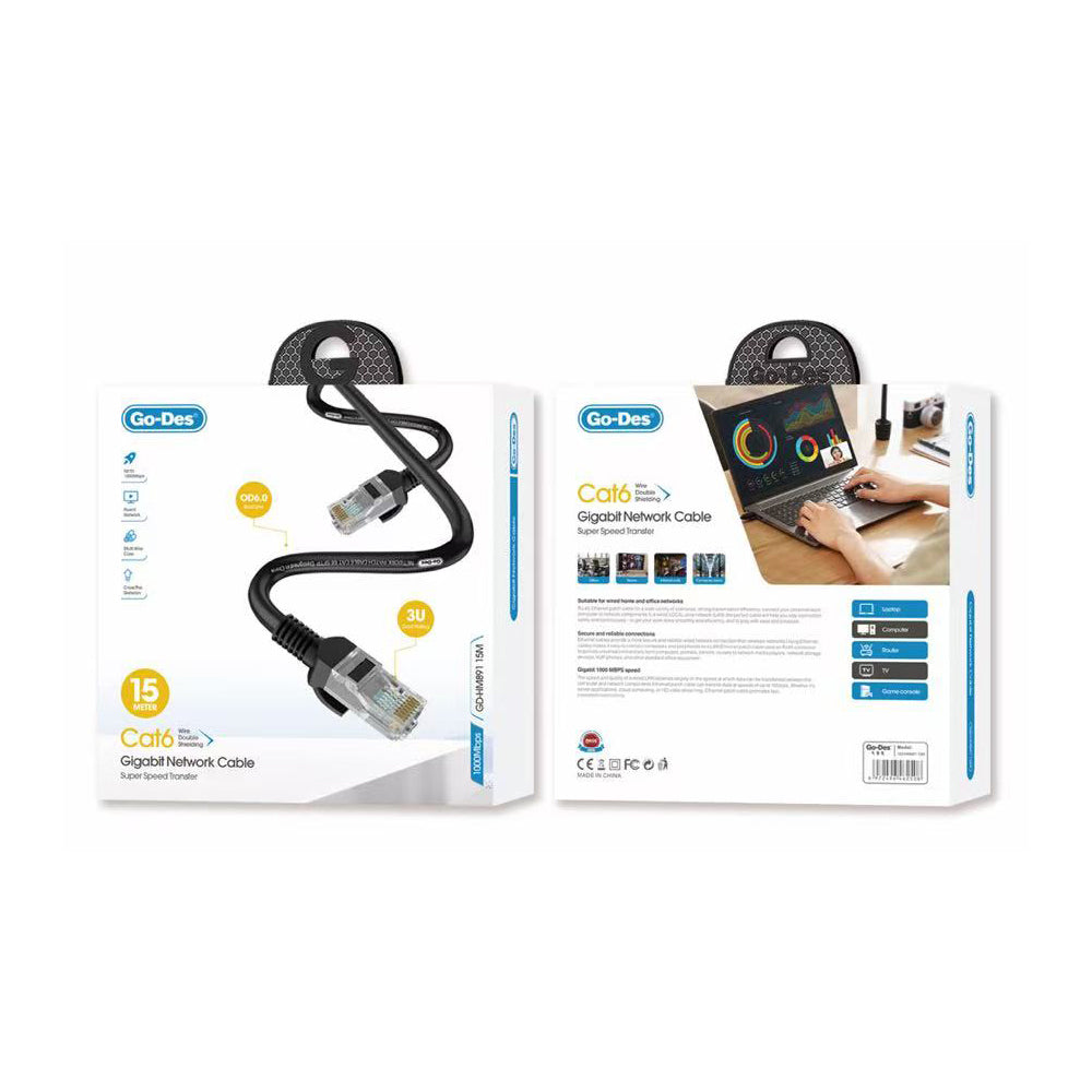 Go Des GD-HM891 1000Mbps Aktarım Hızlı RJ45 Ethernet Kablosu 15M Siyah