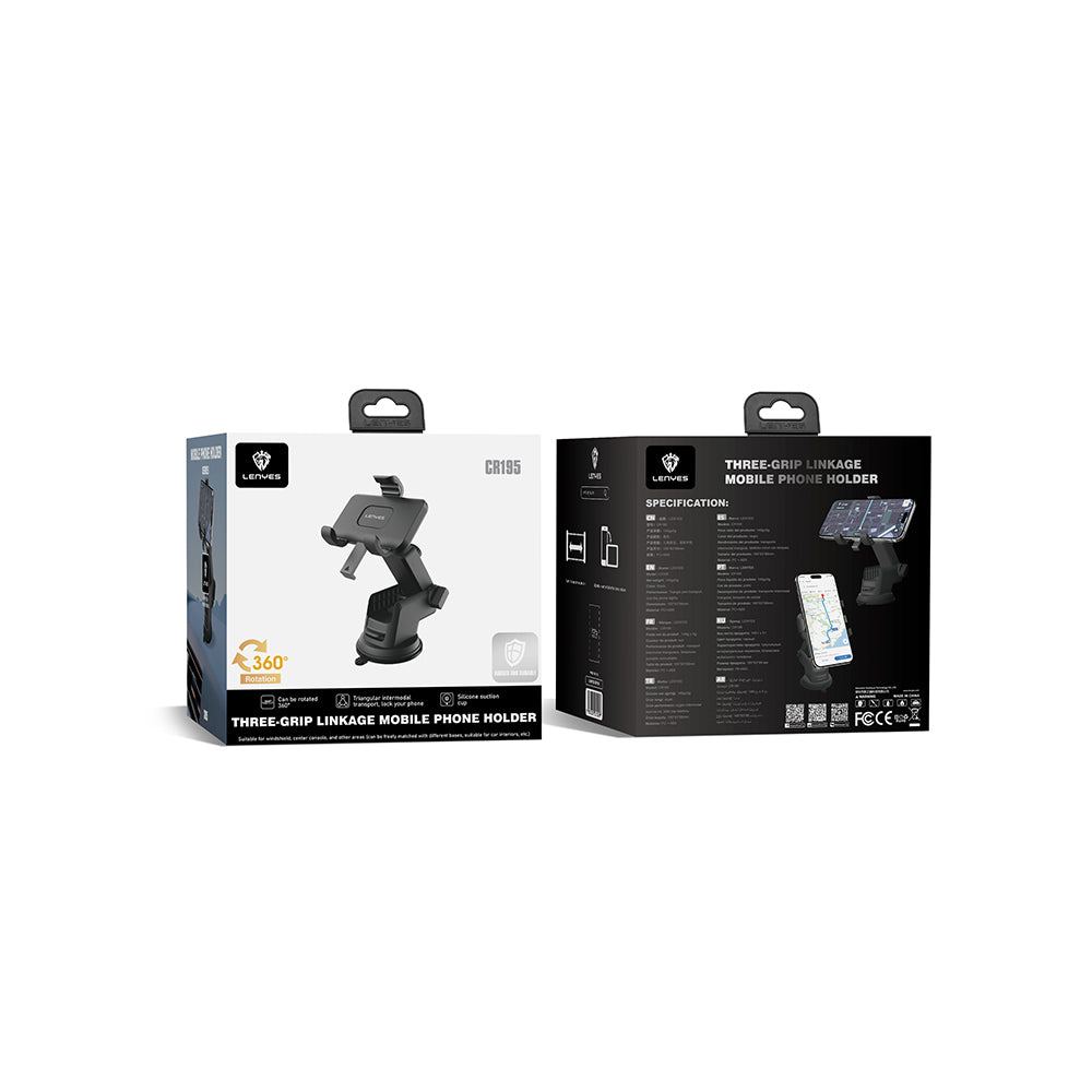 Lenyes CR195 Sarsıntı Önleyici 360° Derece Dönebilen Teleskopik Vantuzlu Tasarım Araç Telefon Tutucu Siyah
