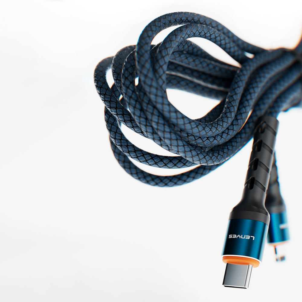 Lenyes LC515, hem sağlamlık hem de zariflik sunan alüminyum alaşım başlıklara ve özel balık ağı dokusuna sahip örgülü gövdeye sahiptir. Bu iki güçlü yapı birleşimi sayesinde kablo, bükülmelere ve günlük aşınmalara karşı üstün bir dayanıklılık sergiler. Ofiste, evde veya seyahatlerde her an elinizin altında bulunabilecek şekilde tasarlanmıştır.