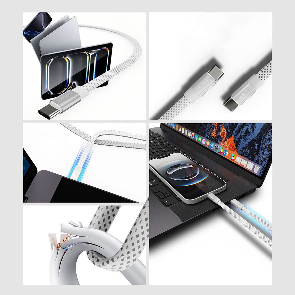 Lenyes LC538 Type-C to Lightning Hızlı Şarj Özellikli 48D Aramid Fiber Örgü Tasarımlı Data ve Şarj Kablosu 27W 1M Beyaz