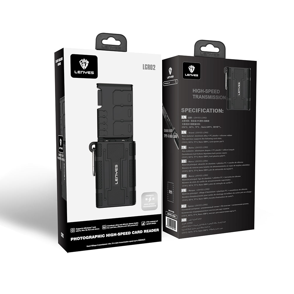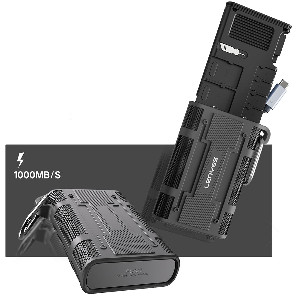 Lenyes LCR02 Type-C Kablolu Su Geçirmez Çoklu Kart Depolama ve Okuyucu Kutusu 10 Gbps Siyah