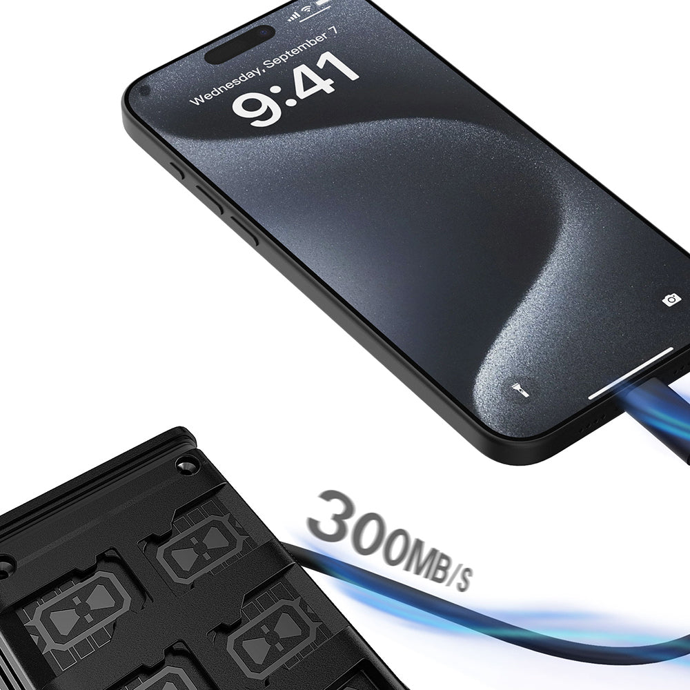 4 adet SD kart ve 10 adet TF kart yuvası ile birlikte gelen LCR03, aynı anda SD/TF çift kart okuma desteği sunar. Type-C arabirimi üzerinden sağladığı 5Gbps’ye kadar ulaşabilen aktarım hızı sayesinde büyük boyutlu verileri hızlıca yedeklemenizi sağlar. Film dosyaları, yüksek çözünürlüklü görseller veya ağır sunum belgeleri birkaç saniye içinde bilgisayarınıza aktarılır. Dahili kart iğnesi bölmesiyle SIM kart değişimlerinde de destek sunar.