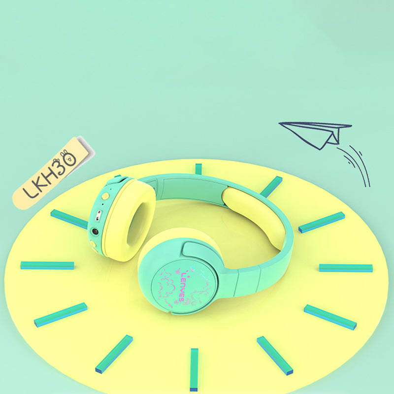 Lenyes LKH30 Ayarlanabilir Katlanabilir Çocuklara Özel Işık Efektli Kulak Üstü Kablolu ve Bluetooth Kulaklık v5.3 Yeşil