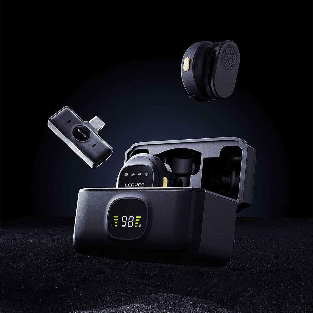 Lenyes LM204-TC Type-C Şarj Portlu Akıllı Gürültü Engelleyicili Type-C Bağlantılı Kablosuz Yaka Mikrofonu Siyah