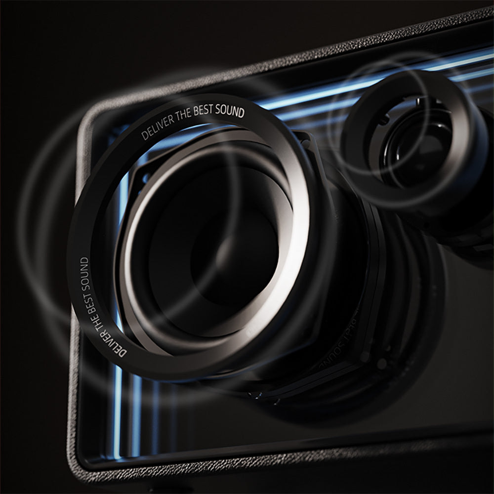 Lenyes S862 ile evinizi adeta bir konser alanına dönüştürün! 120W yüksek ses çıkışı ve panoramik surround ses özelliği sayesinde her köşede yüksek kaliteli, kayıpsız müzik deneyimi yaşayabilirsiniz. İster karaoke yaparken, ister en sevdiğiniz şarkıları dinlerken, güçlü bas ve kristal netliğindeki tizler ile müzik keyfinizi doruklara çıkarın. Şık ve modern tasarımı, deri dokulu yüzeyi, müziği görünür ve sürükleyici kılan 7 çeşit renkli ışık efektine sahip benzersiz ABYSS ayna tasarımı ön paneli ile bu hoparlör, sadece bir cihaz değil, aynı zamanda bir dekorasyon parçası olacak.