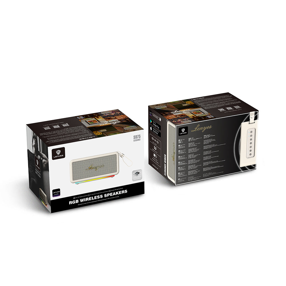 Lenyes S875 Elegance Serisi RGB Işıklı Taşınabilir Su Geçirmez TWS Bluetooth Hoparlör v5.3 40W Bej