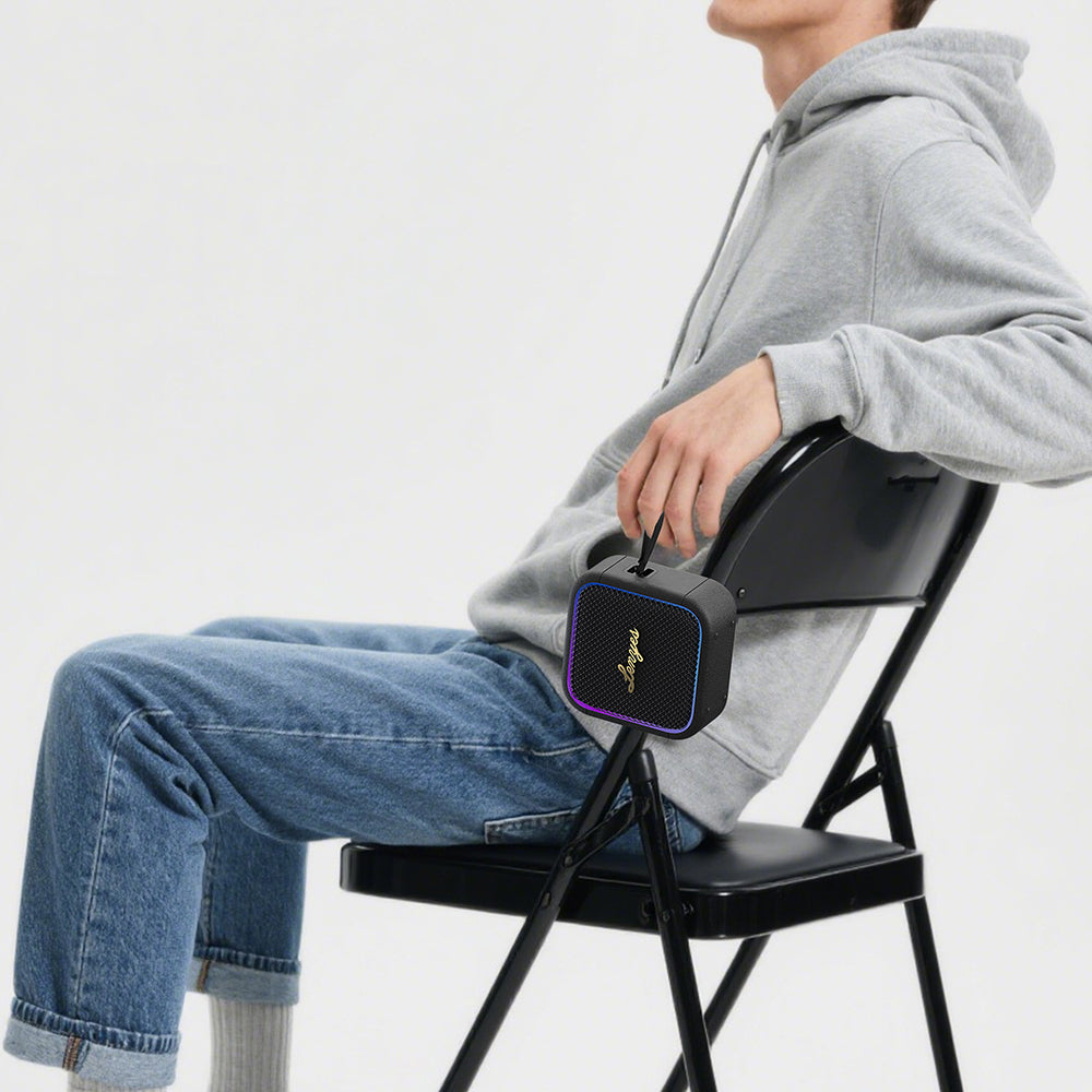 Lenyes S890 Su Geçirmez Özellikli RGB Işıklı Askılı Mini OTG-TWS Bluetooth Hoparlör v5.3 Siyah