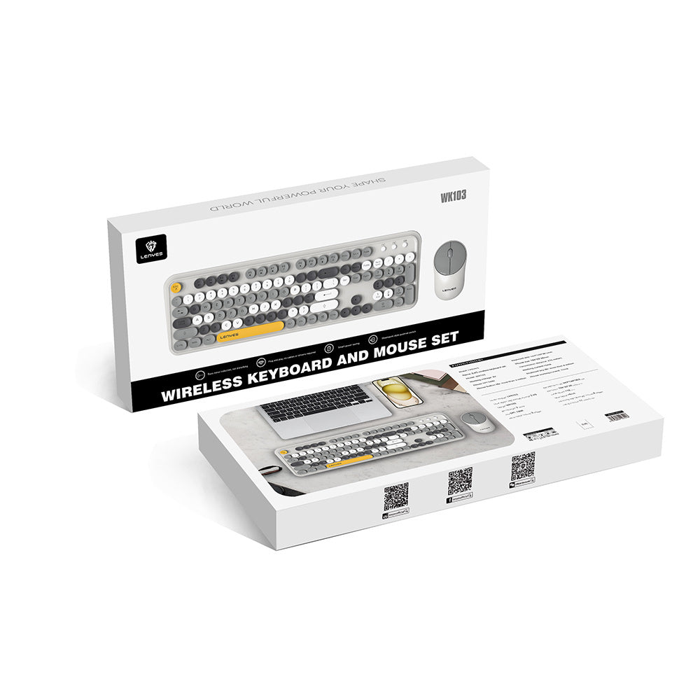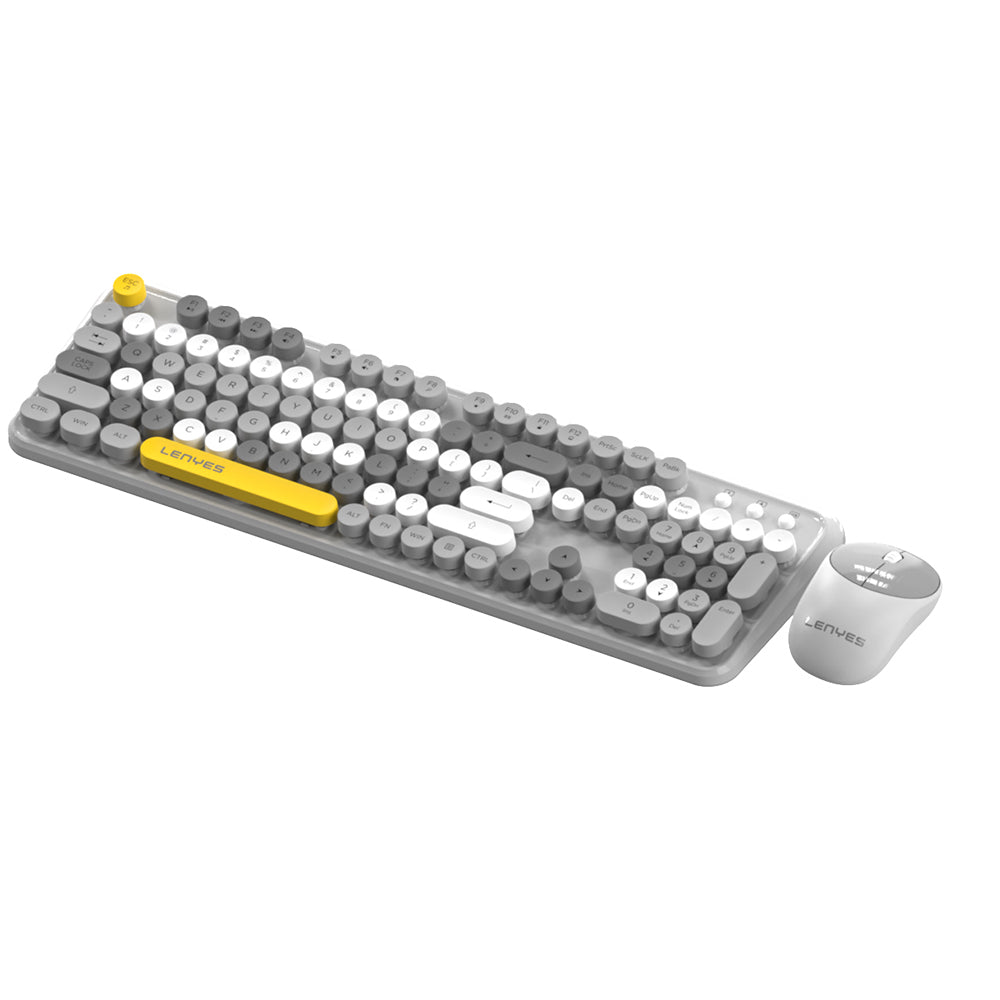 Lenyes WK103 Mekanik 2in1 2.4G Kablosuz Klavye ve 1600 DPI Mouse Seti Gri