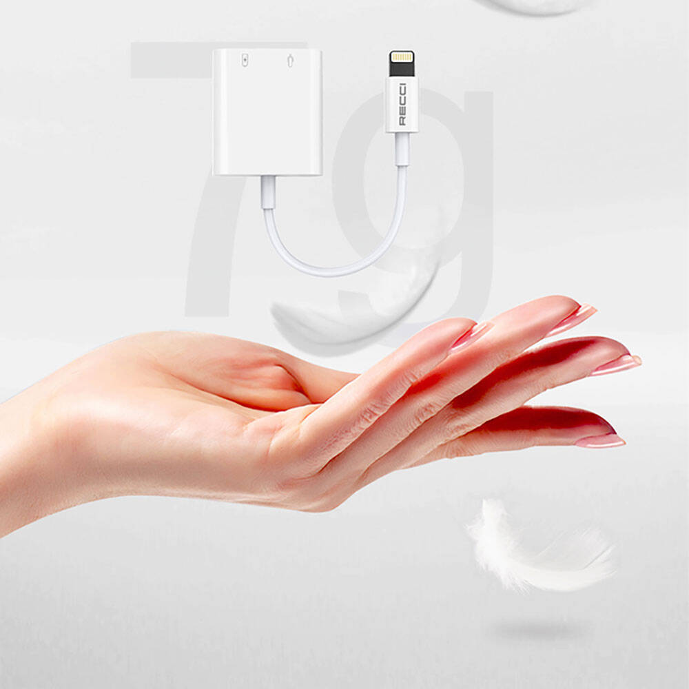 Recci RDS-A10 Lightning PD3.0 2in1 Şarj ve Ses Adaptörü Beyaz