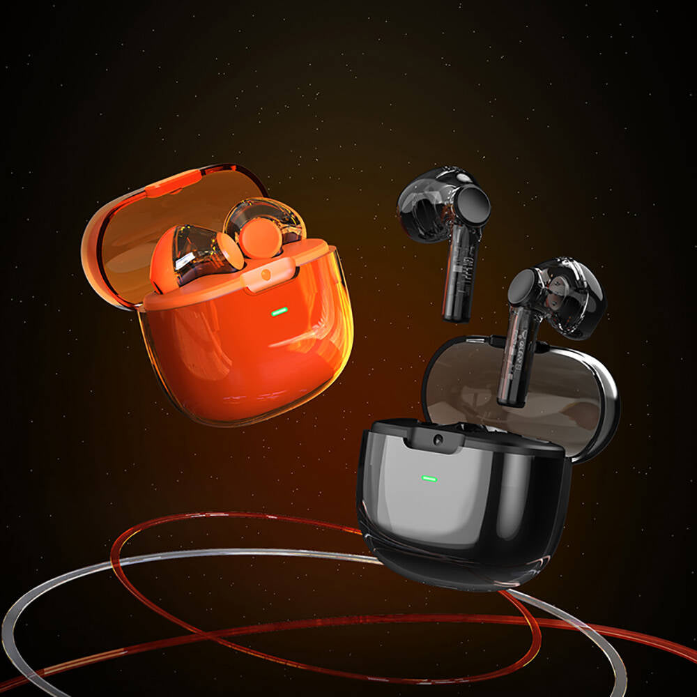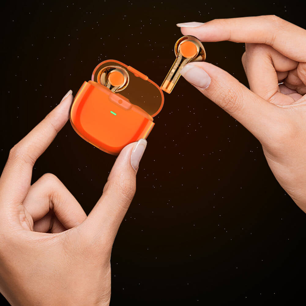 Recci REP-W50 Şeffaf Tasarım Hi-Fi Ses Kaliteli Bluetooth v5.3 Amber Serisi Kulak İçi Kulaklık