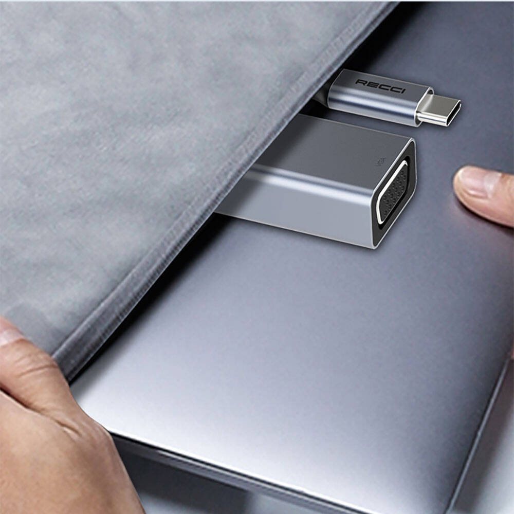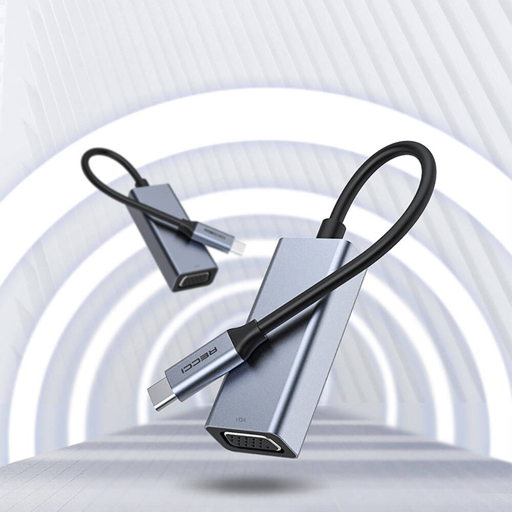 Recci RH12 VGA to Type-C Dönüştürücü Kablo Gri
