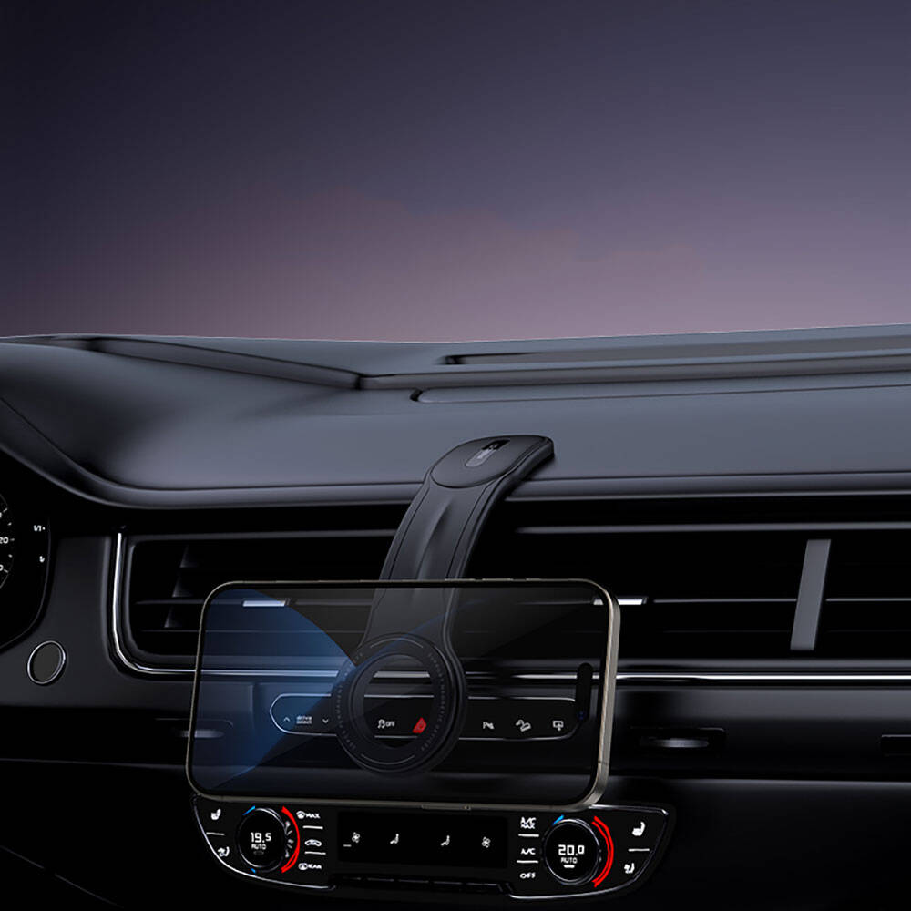 Recci RHO-C40 Magnetik Magsafe Uyumlu Bükülebilen Eğimli ve Düz Zemin Araç Telefon Tutucu Siyah