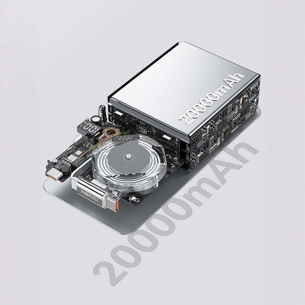 Recci RPB-P72 Hızlı Şarj Özellikli Type-C Kablolu Powerbank 65W 20.000mAh Gri