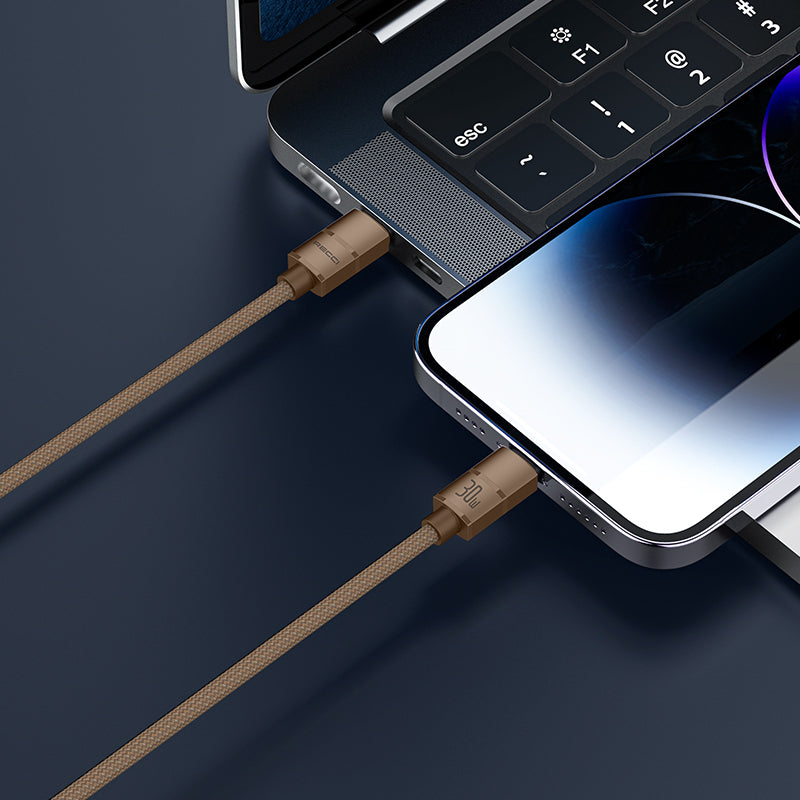 Recci RS08CL Warrior Serisi Type-C to Lightning 30W Hızlı Şarj Özellikli Data ve Şarj Kablosu 1.2M Desert Gold