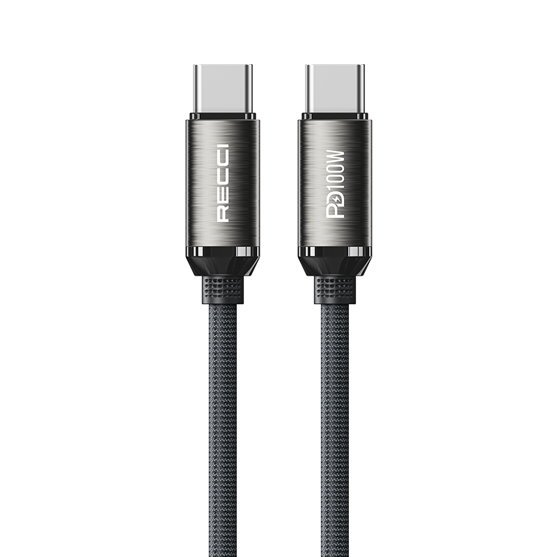 Recci RS45CC Type-C to Type-C PD 100W Örgü Tasarımlı Hızlı Şarj Özellikli Data ve Şarj Kablosu 1M Gri
