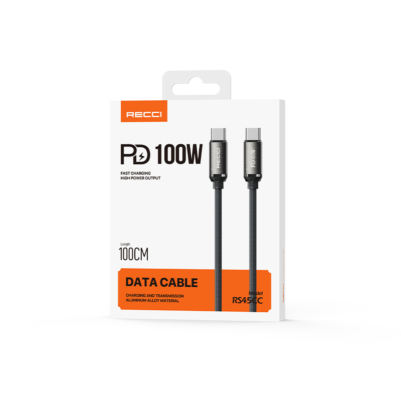 Recci RS45CC Type-C to Type-C PD 100W Örgü Tasarımlı Hızlı Şarj Özellikli Data ve Şarj Kablosu 1M
