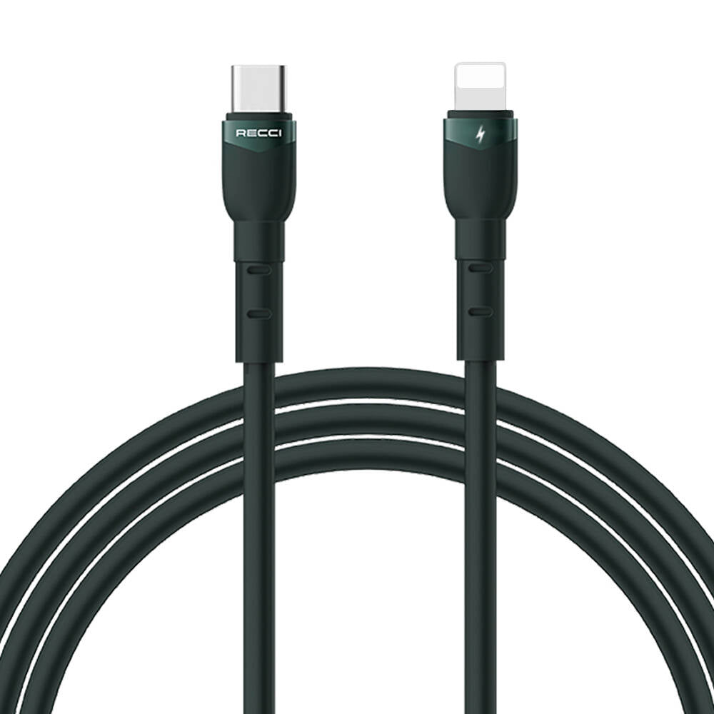 Recci RTC-P35CL Hızlı Şarj Özellikli 100cm Type-C to Lightning Kablo Yeşil
