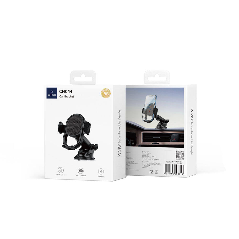 Wiwu CH044 Otomatik Mekanizmalı Uzatılabilir Vantuzlu Tasarım Araç Telefon Tutucu Siyah
